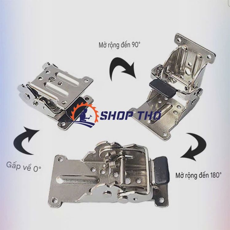 Bản lề chân bàn gấp, bản lề nối cánh mở 0-90-180 độ phanh kép màu vàng