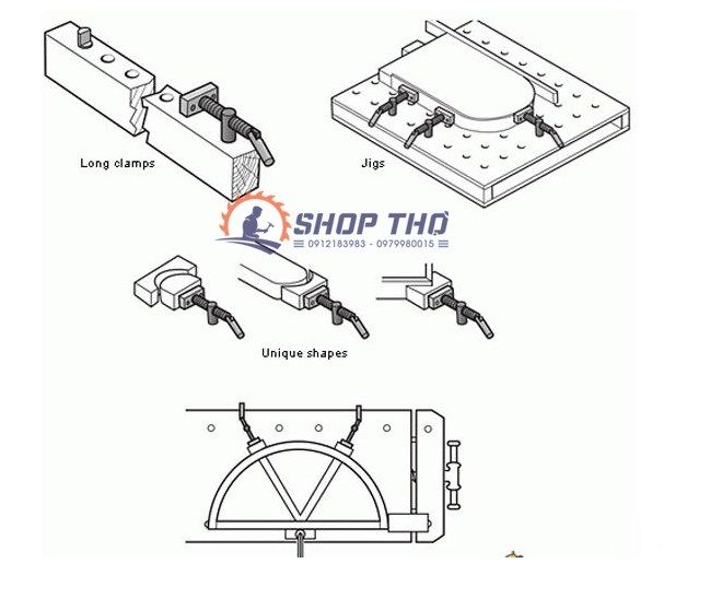 Bộ gá kẹp phôi trên mặt bàn workbench