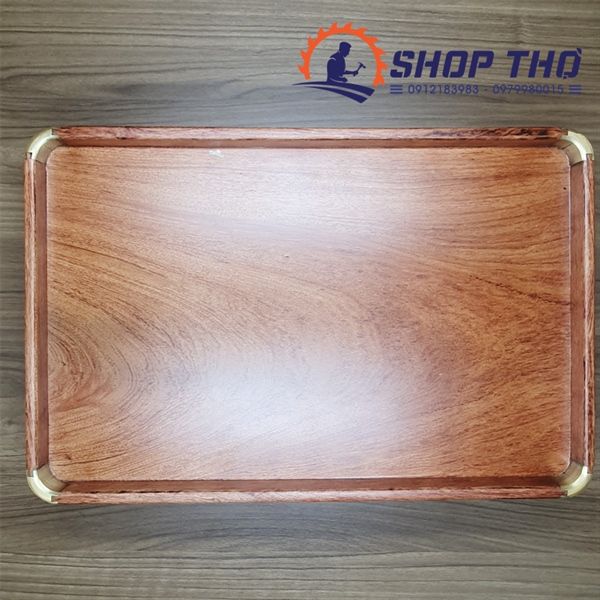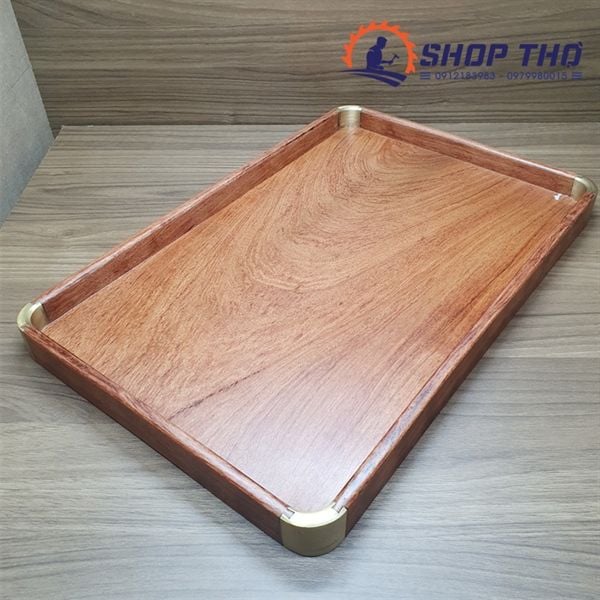 Khay gỗ hương góc đồng thau (410x270x30)